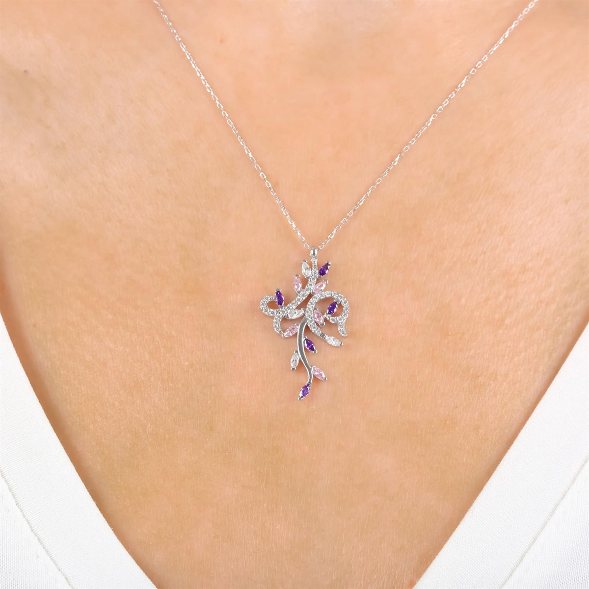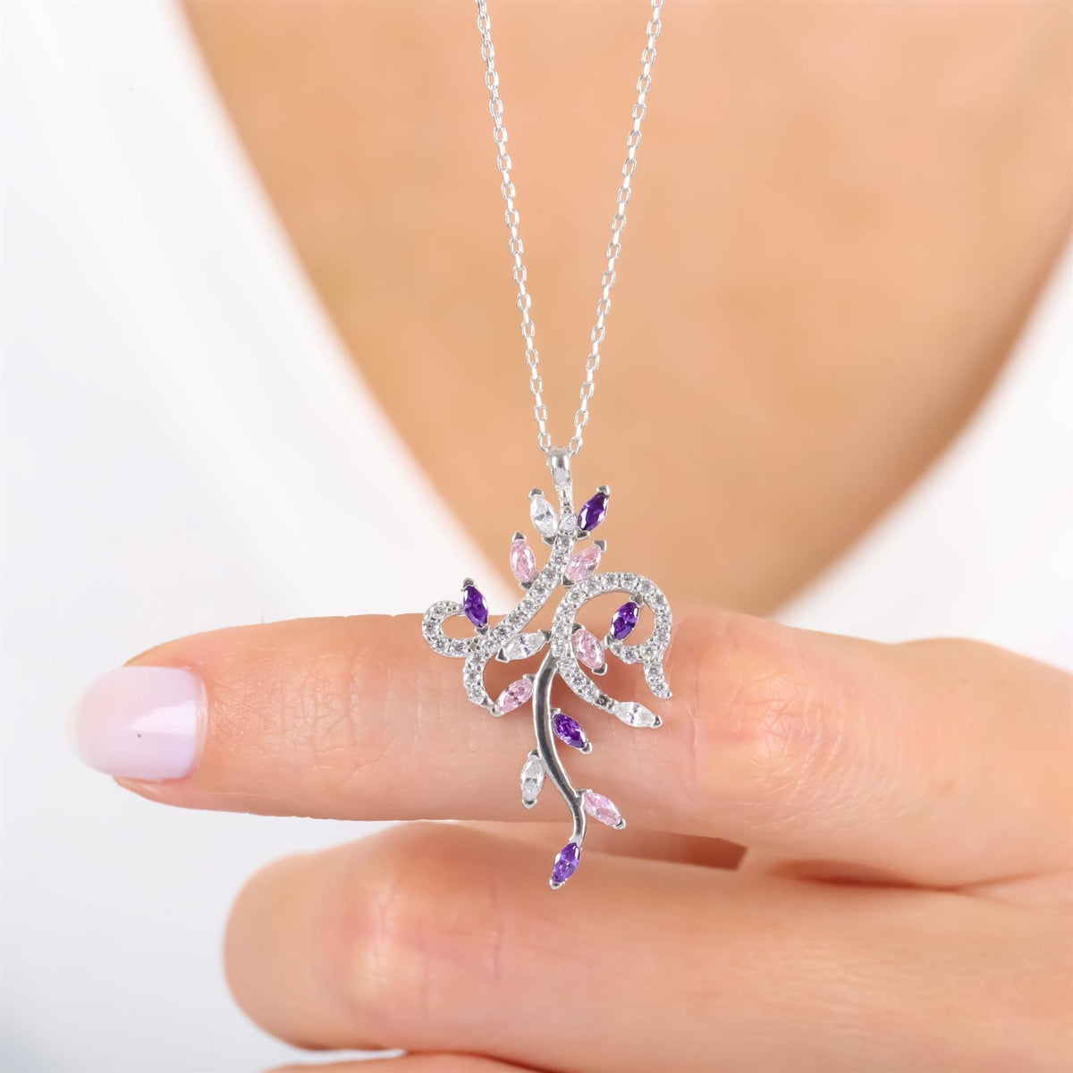 Presented in a luxurious Etossimo Jewelry gift box and bag, the Princess Bloom Curve Multicolor CZ 925K Sterling Silver Necklace is a radiant expression of individuality and charm.