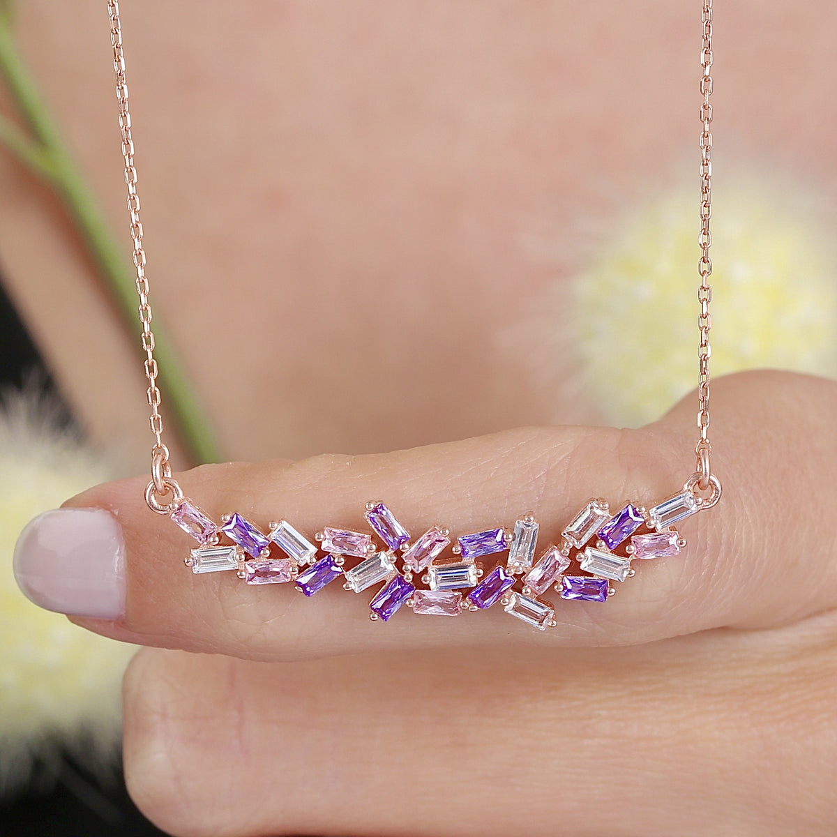 Prismatic Baguette Symphony Twig CZ Rose Gold 925K Sterling Silver Necklace
