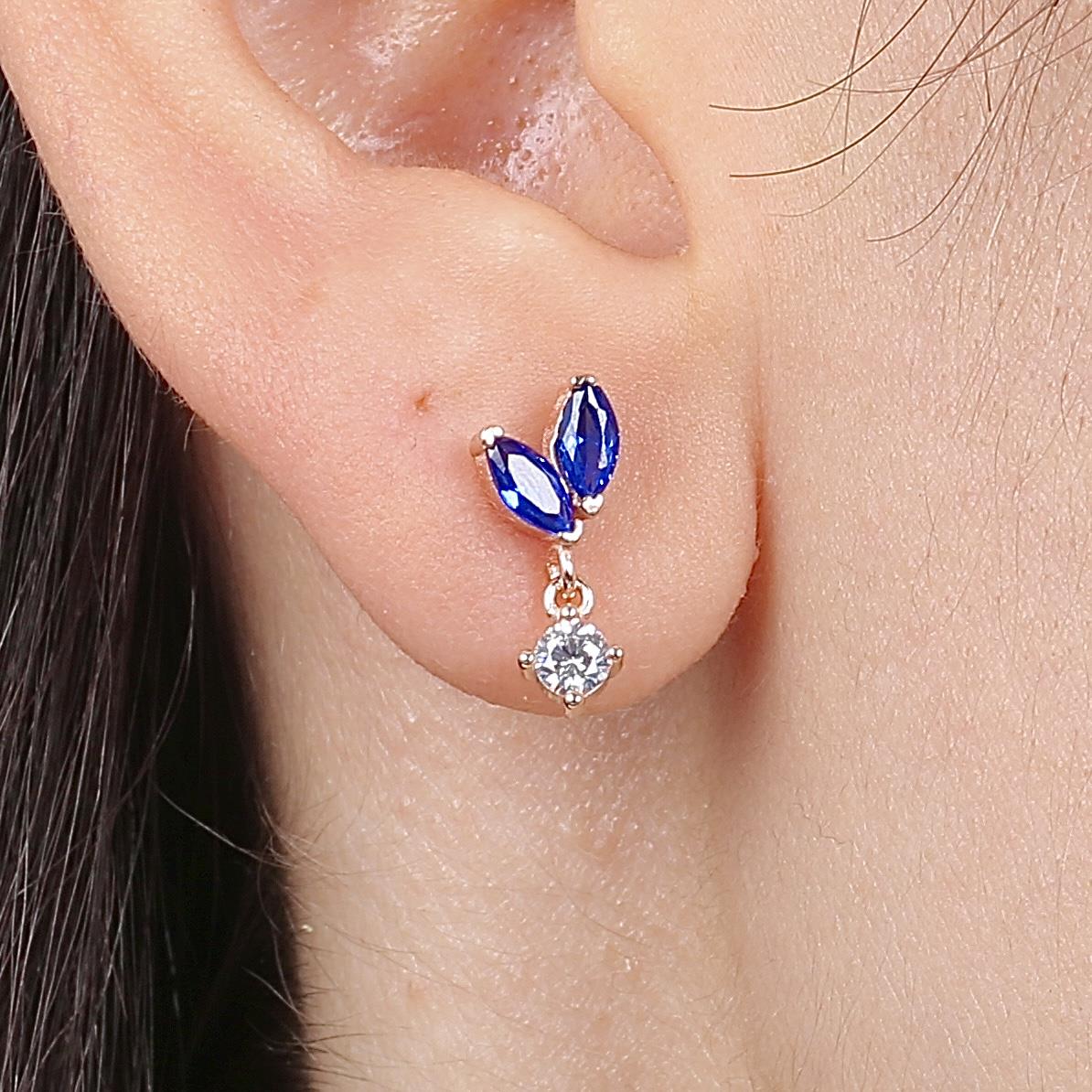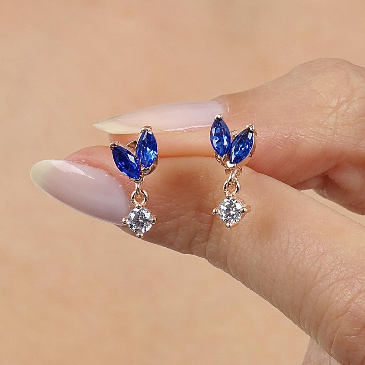 Radiate timeless beauty with the Radiant Blossom Bud Sapphire Color CZ 925K Sterling Silver Earrings. Inspired by the elegance of a blooming bud, these earrings feature sapphire color cubic zirconia stones—symbolizing wisdom, serenity, and refined grace through their deep blue brilliance.