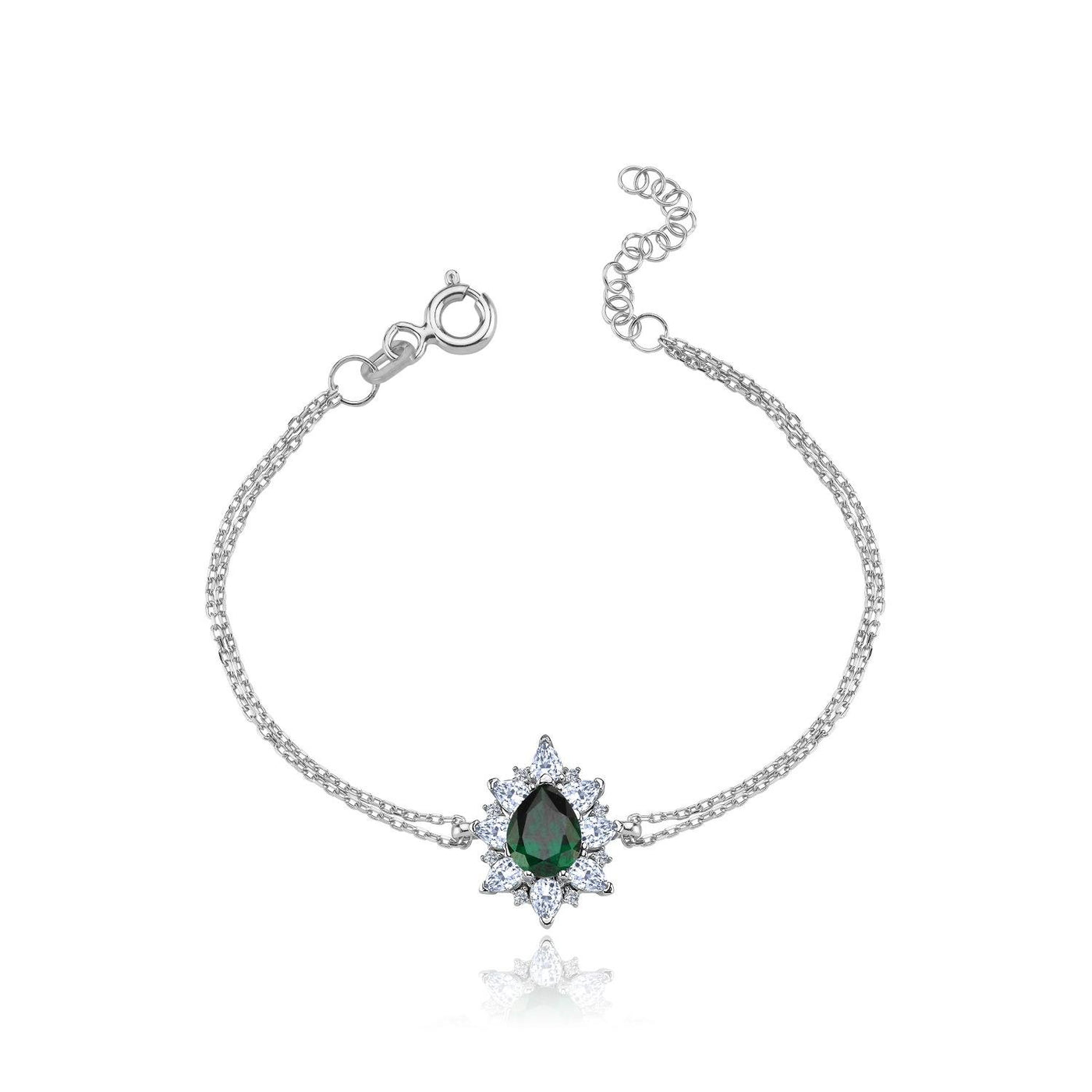 Radiant Emerald Color Royal Bloom CZ 925K Sterling Silver Bracelet