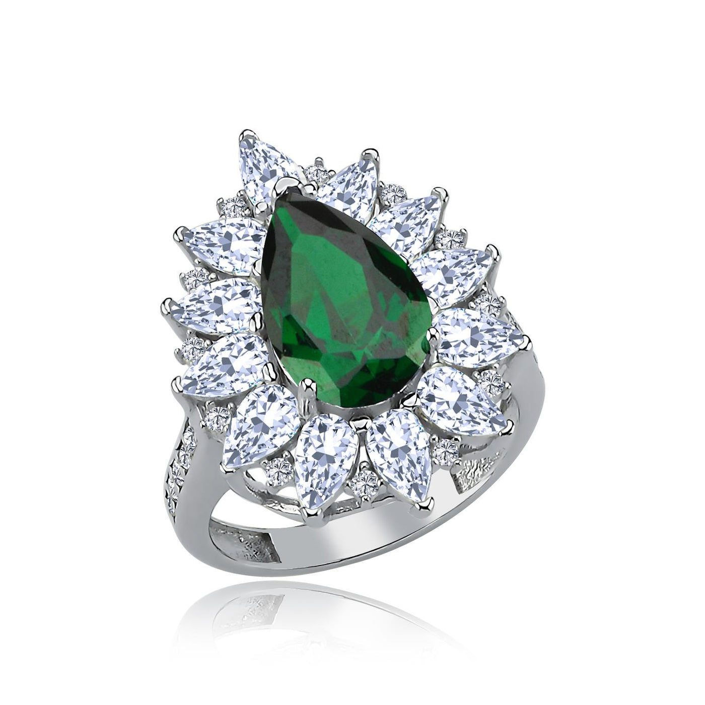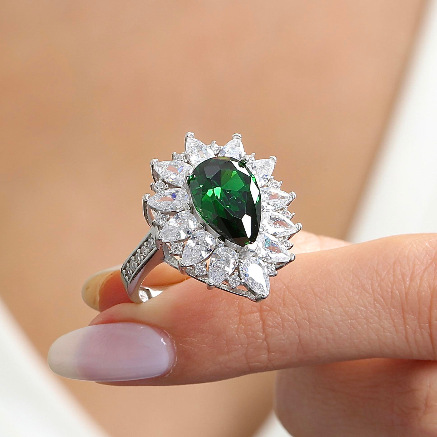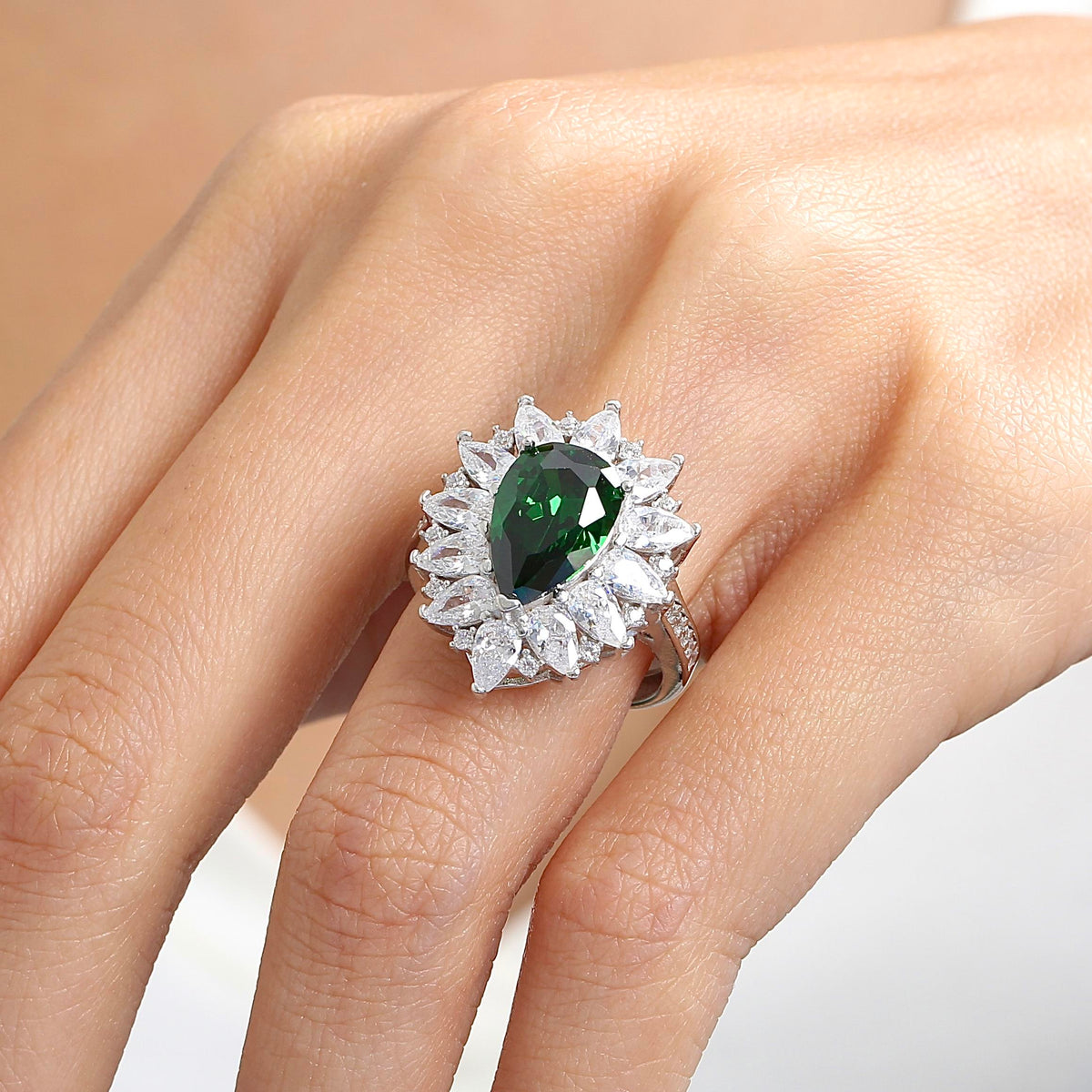 Radiant Emerald Color Royal Bloom CZ 925K Sterling Silver Ring