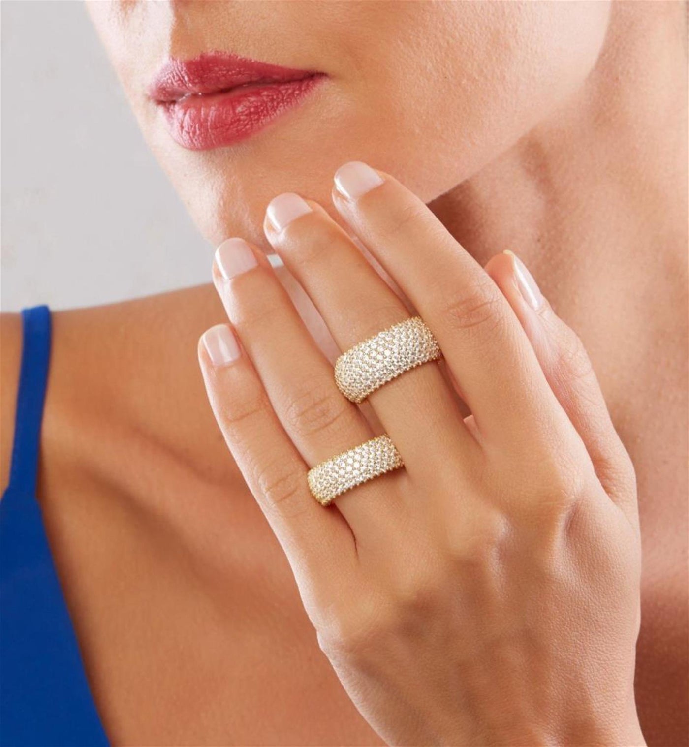 Celebrate endless brilliance with the Radiant Five Layer Eternity CZ 14K Gold Ring. Featuring five luxurious rows of shimmering cubic zirconia stones, this dazzling design represents strength, elegance, and timeless devotion with every radiant layer.