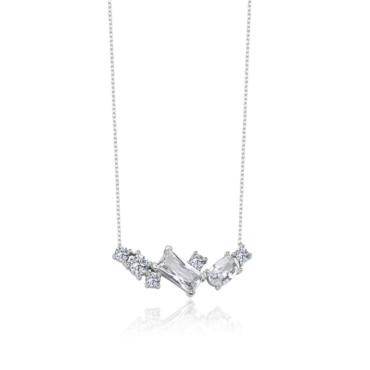 Radiant Geometric Shape Symphony CZ 925K Sterling Silver Necklace