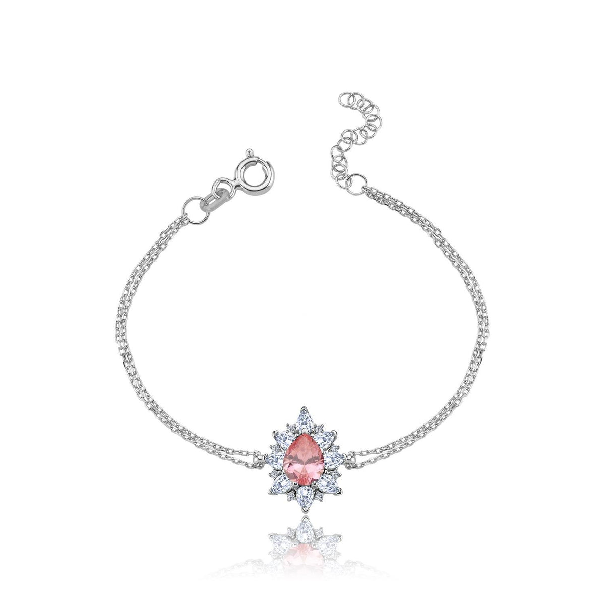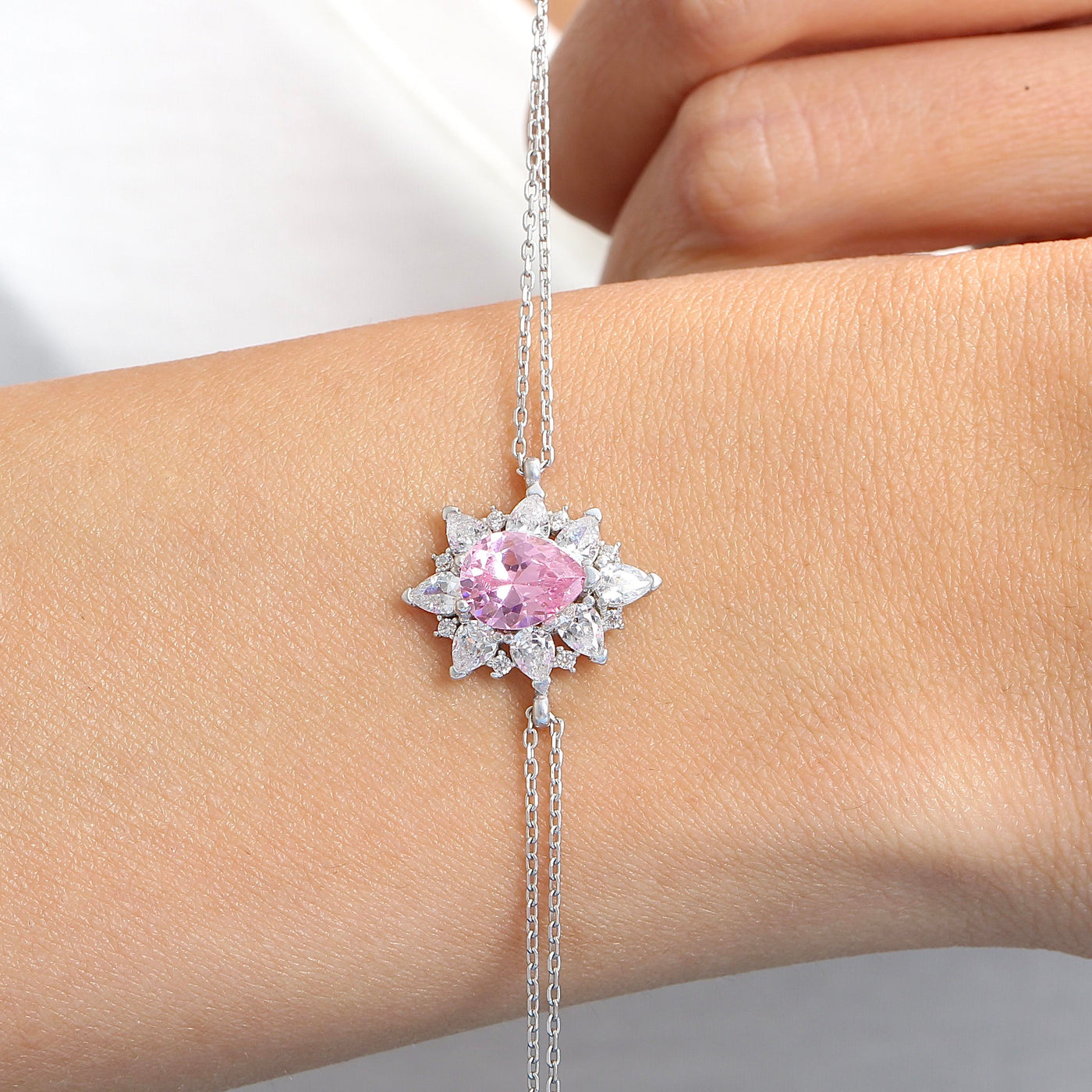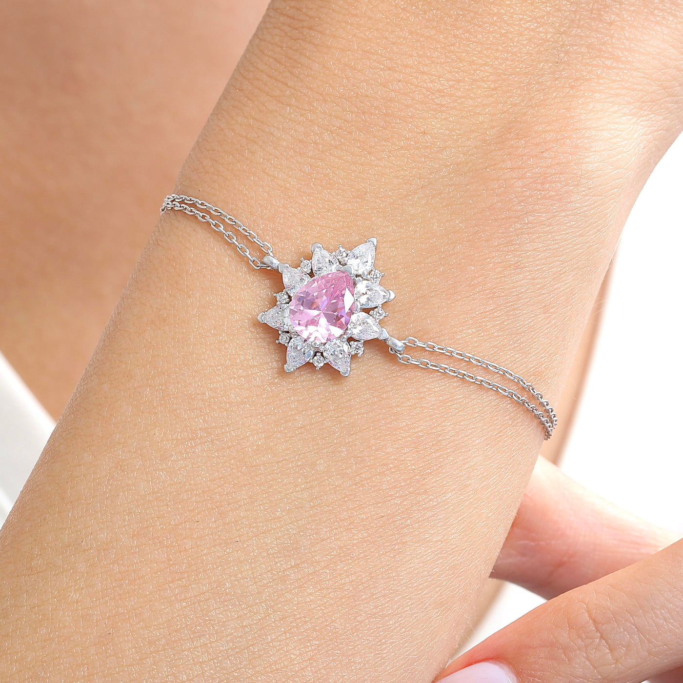 Radiant Pink Stone Royal Bloom CZ 925K Sterling Silver Bracelet