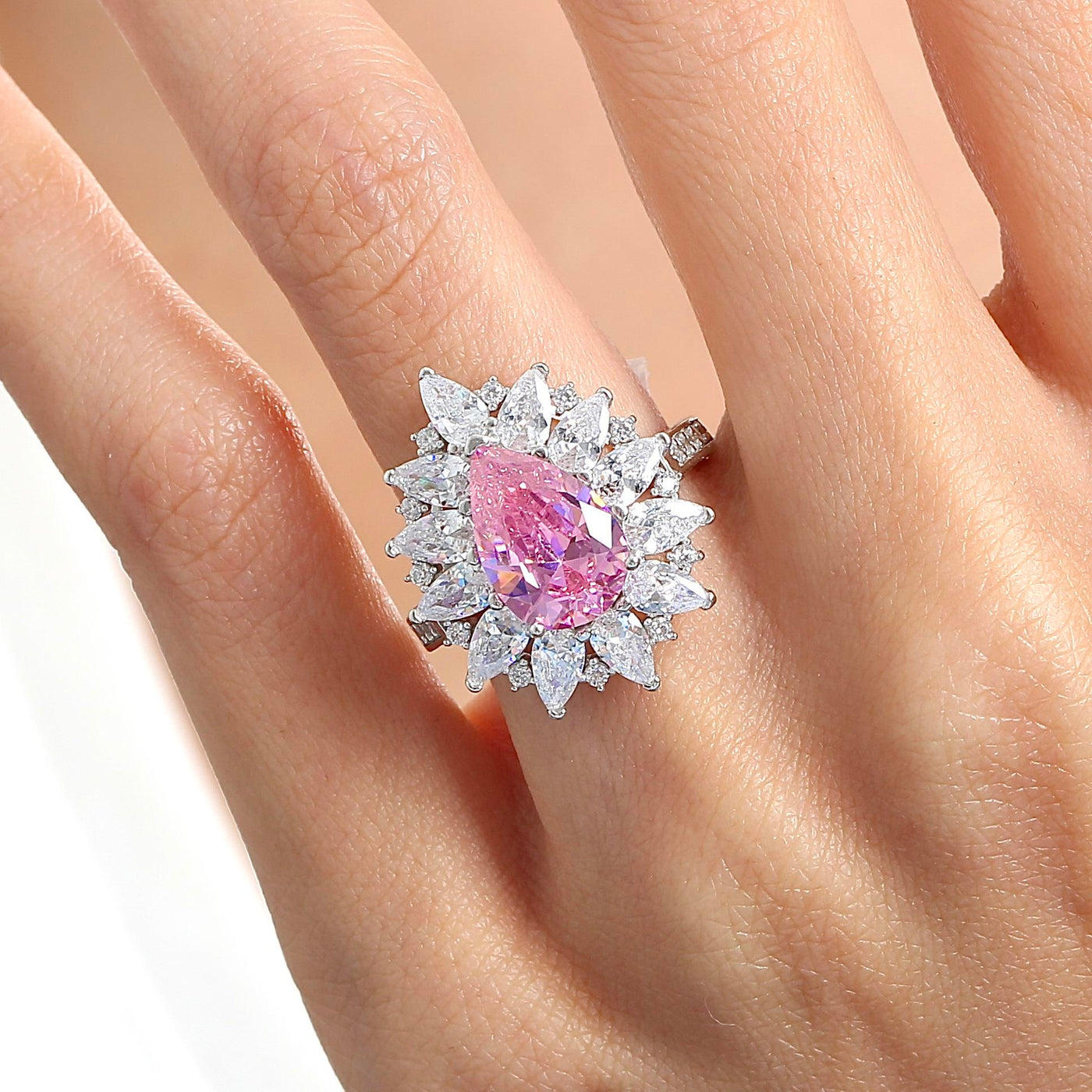 Radiant Pink Stone Royal Bloom CZ 925K Sterling Silver Ring