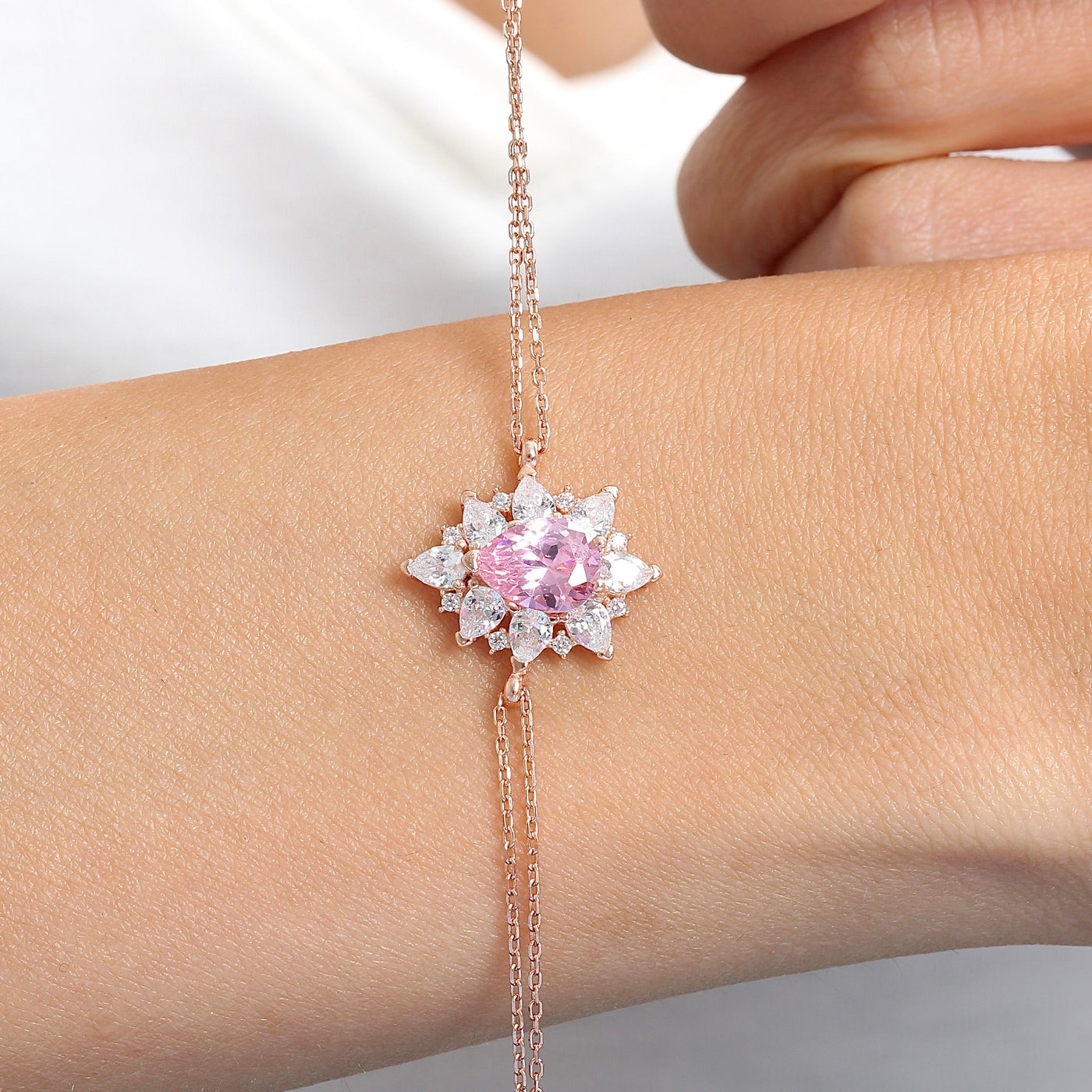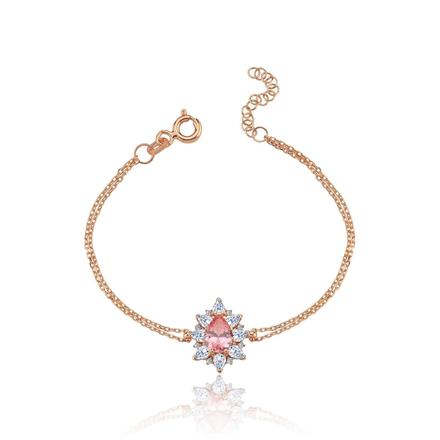 Radiant Pink Stone Royal Bloom CZ Rose Gold 925K Sterling Silver Bracelet