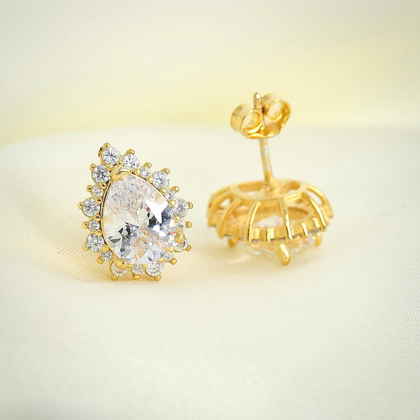 The delicately designed teardrop form, combined with the gleaming 14K gold setting, exudes an aura of modern luxury while maintaining a classic charm. Whether for everyday wear or a special occasion, these earrings are the perfect accessory to enhance your natural beauty with an exquisite glow.