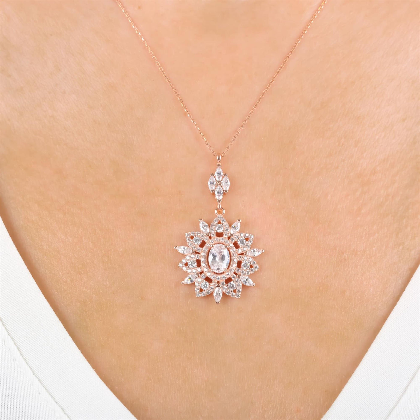 Royal Bloom CZ Rose Gold 925K Sterling Silver Necklace