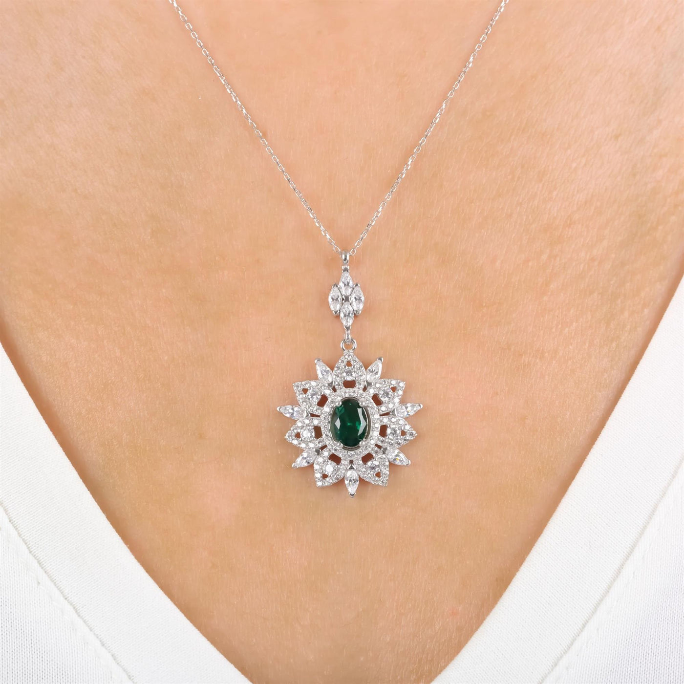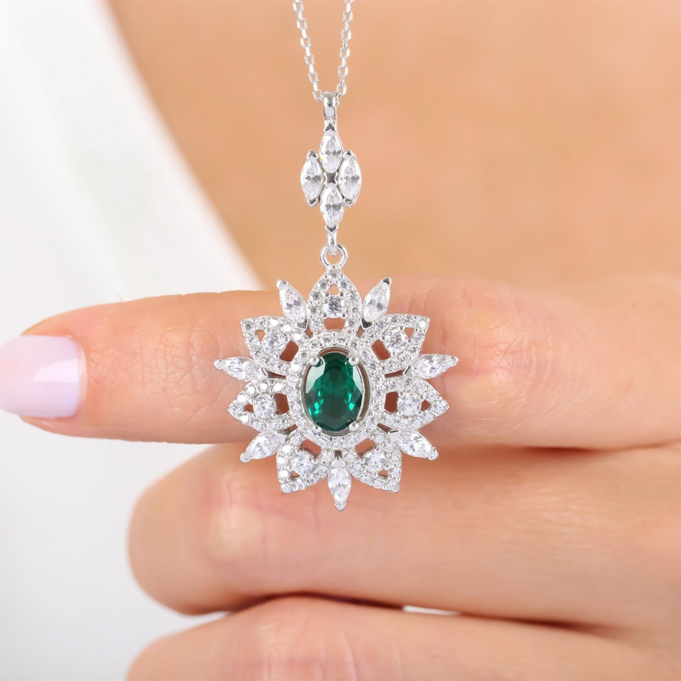 Royal Bloom Emerald Color CZ 925K Sterling Silver Necklace