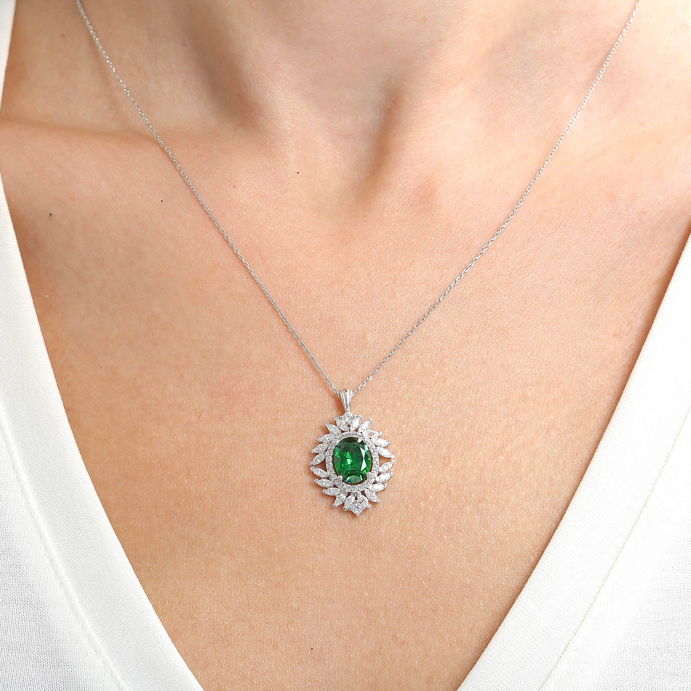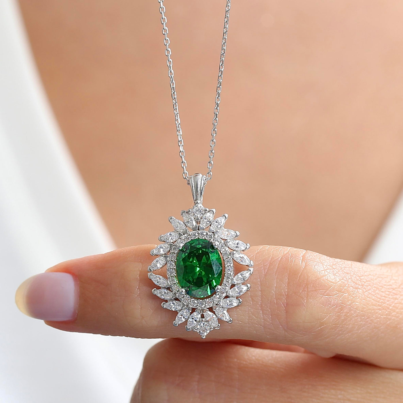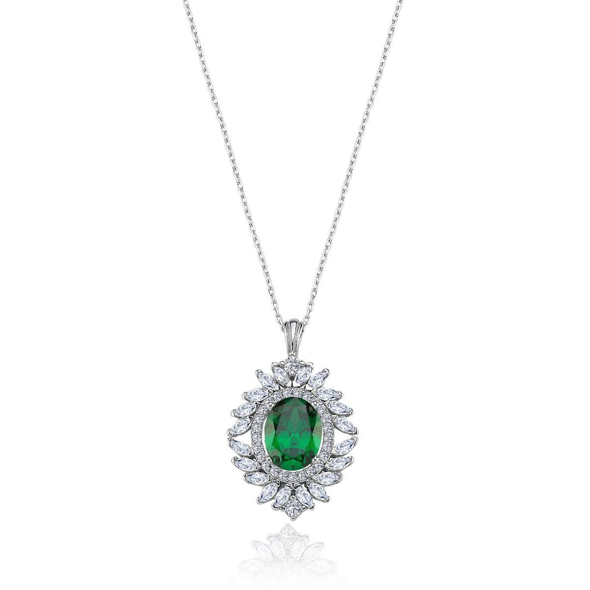 Royal Fleur Emerald Color CZ 925K Sterling Silver Necklace
