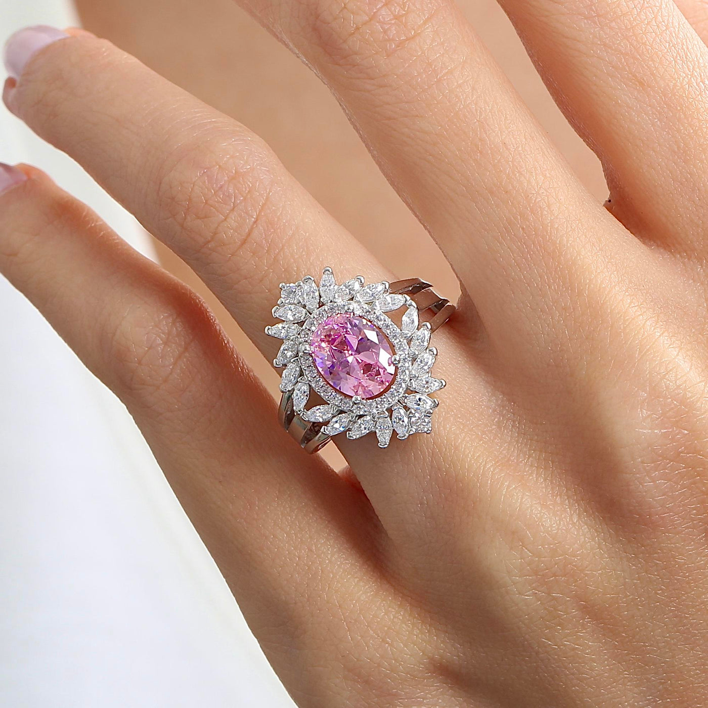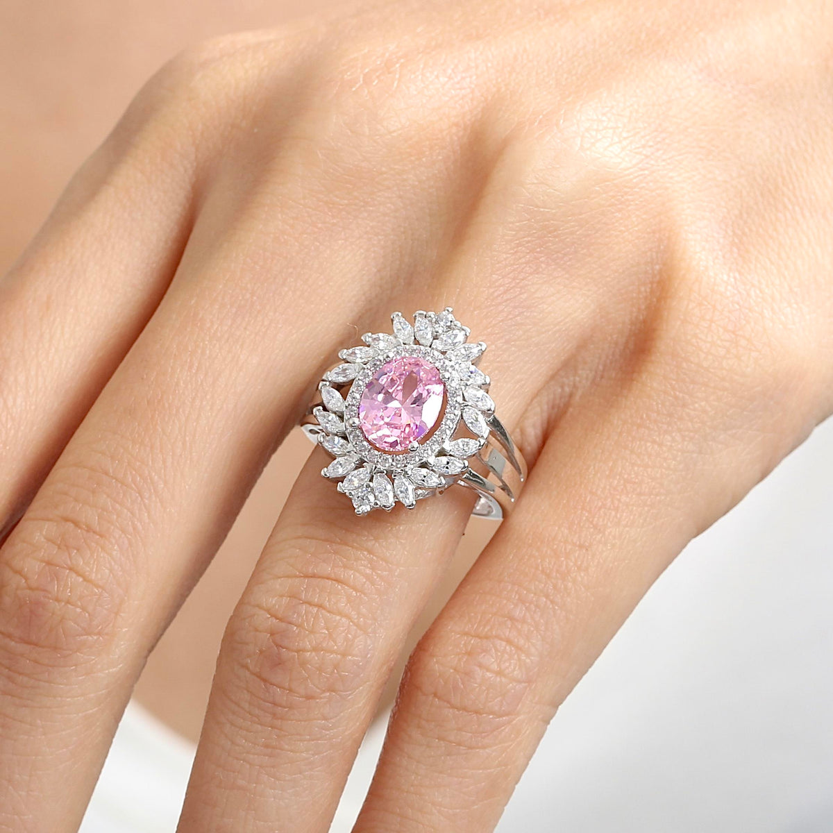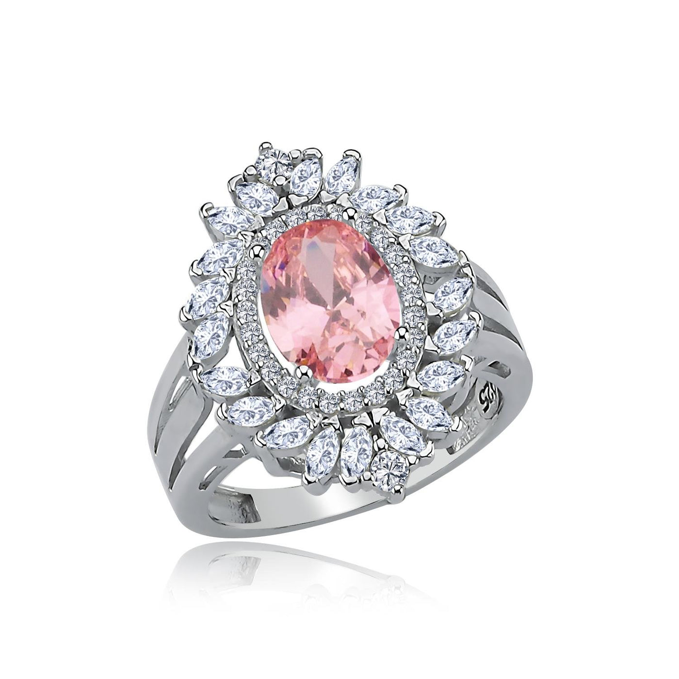 Royal Fleur Pink Stone CZ 925K Sterling Silver Ring