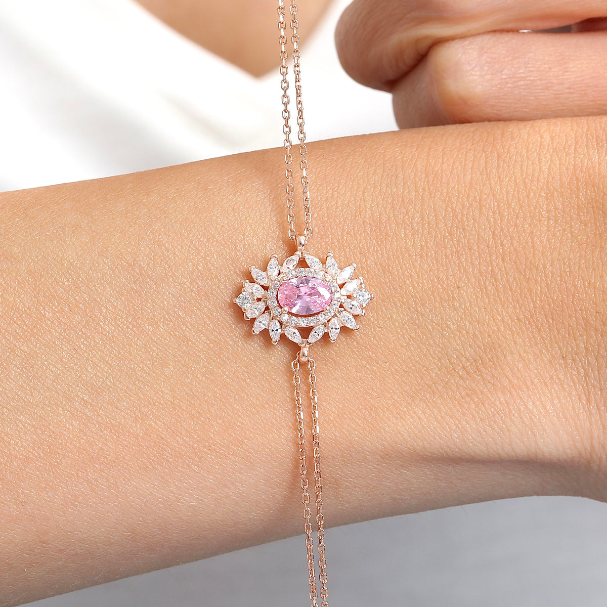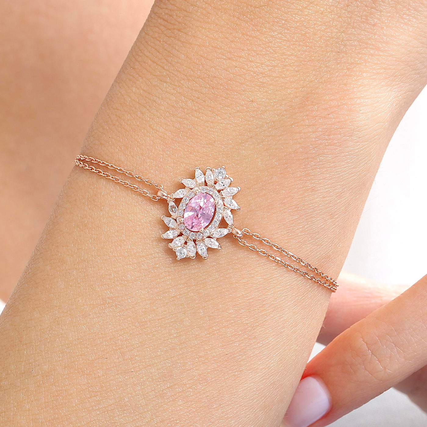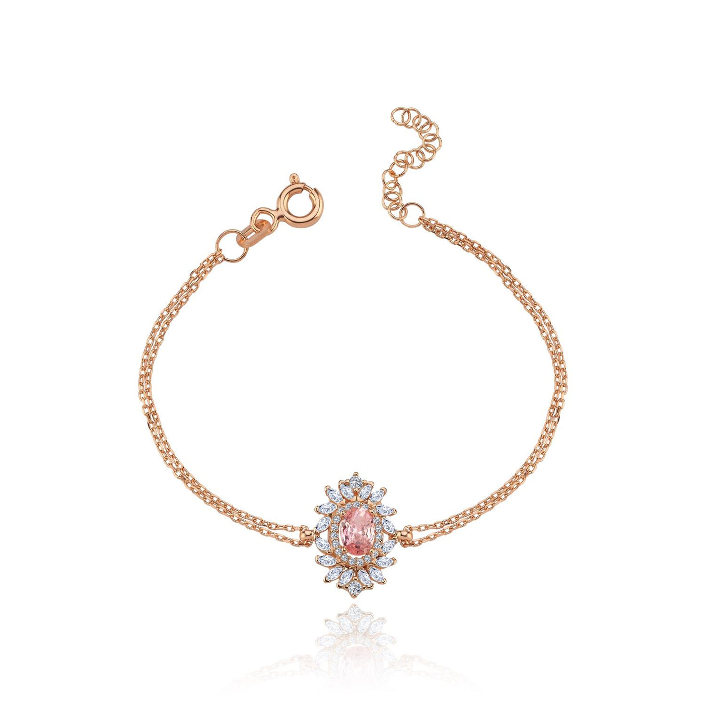 Royal Fleur Pink Stone CZ Rose Gold 925K Sterling Silver Bracelet