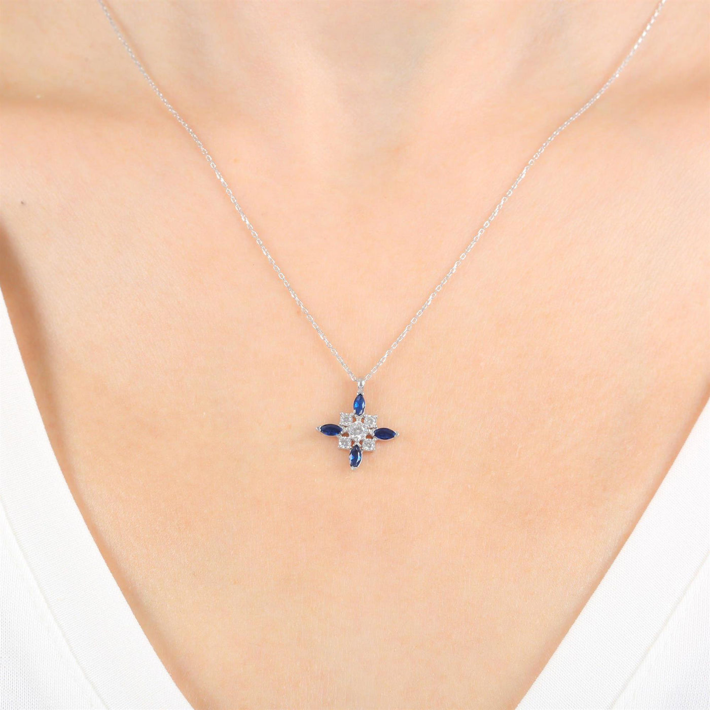 Presented in a luxurious Etossimo Jewelry gift box and bag, the Sapphire Starburst CZ 925K Sterling Silver Necklace makes an unforgettable gift or a captivating treat for yourself.
