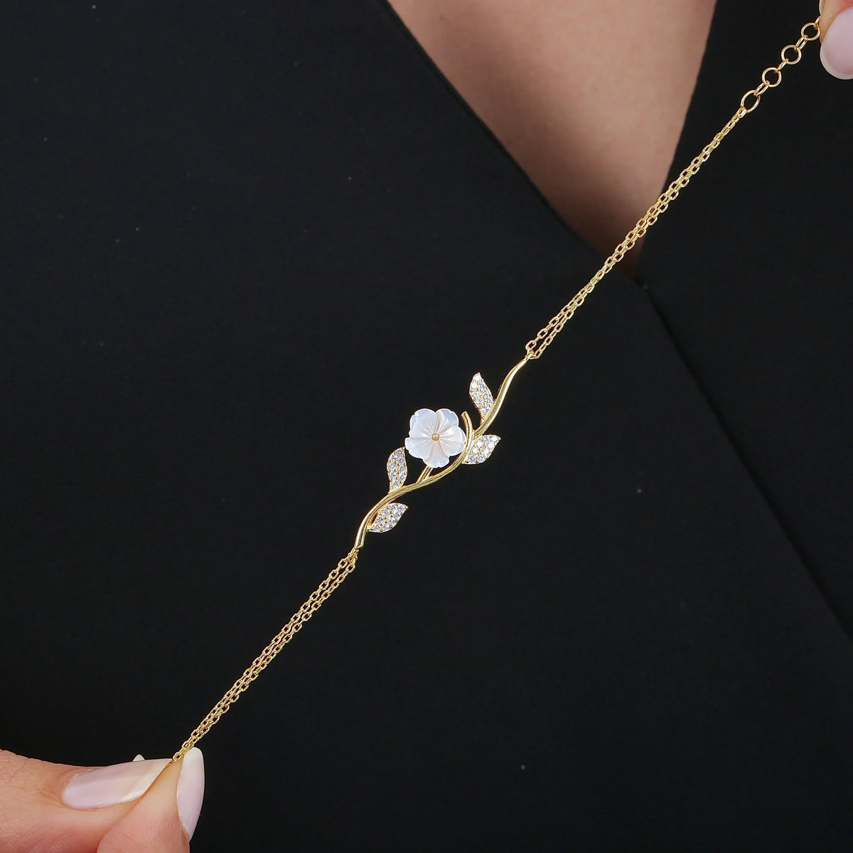 With its smooth, flowing design and soft, organic lines, this bracelet exudes both sophistication and charm, making it a perfect statement piece for any occasion. The combination of the elegant magnolia motif and the radiant CZ stones creates a harmonious balance, offering a refined yet natural aesthetic.