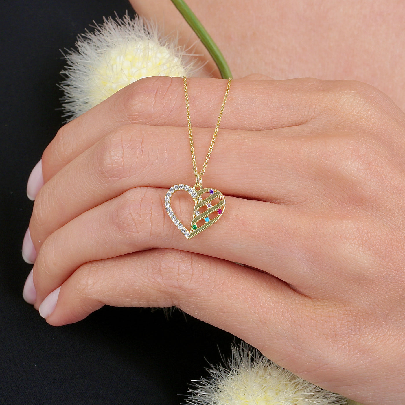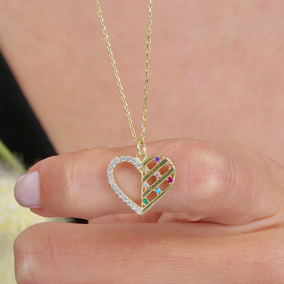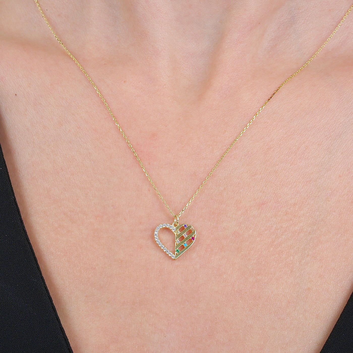 Shimmering Multicolor Gem Heart Talisman CZ 14K Gold Necklace