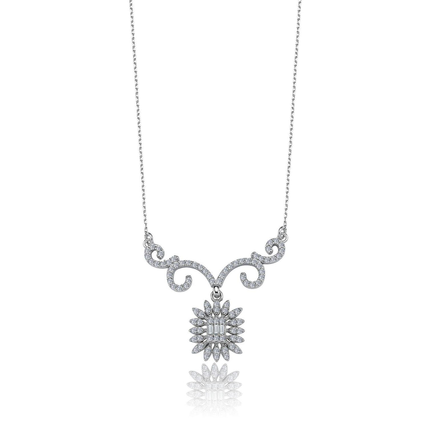 Shining Baget Sun Bloom Baroque Romance CZ 925K Sterling Silver Necklace
