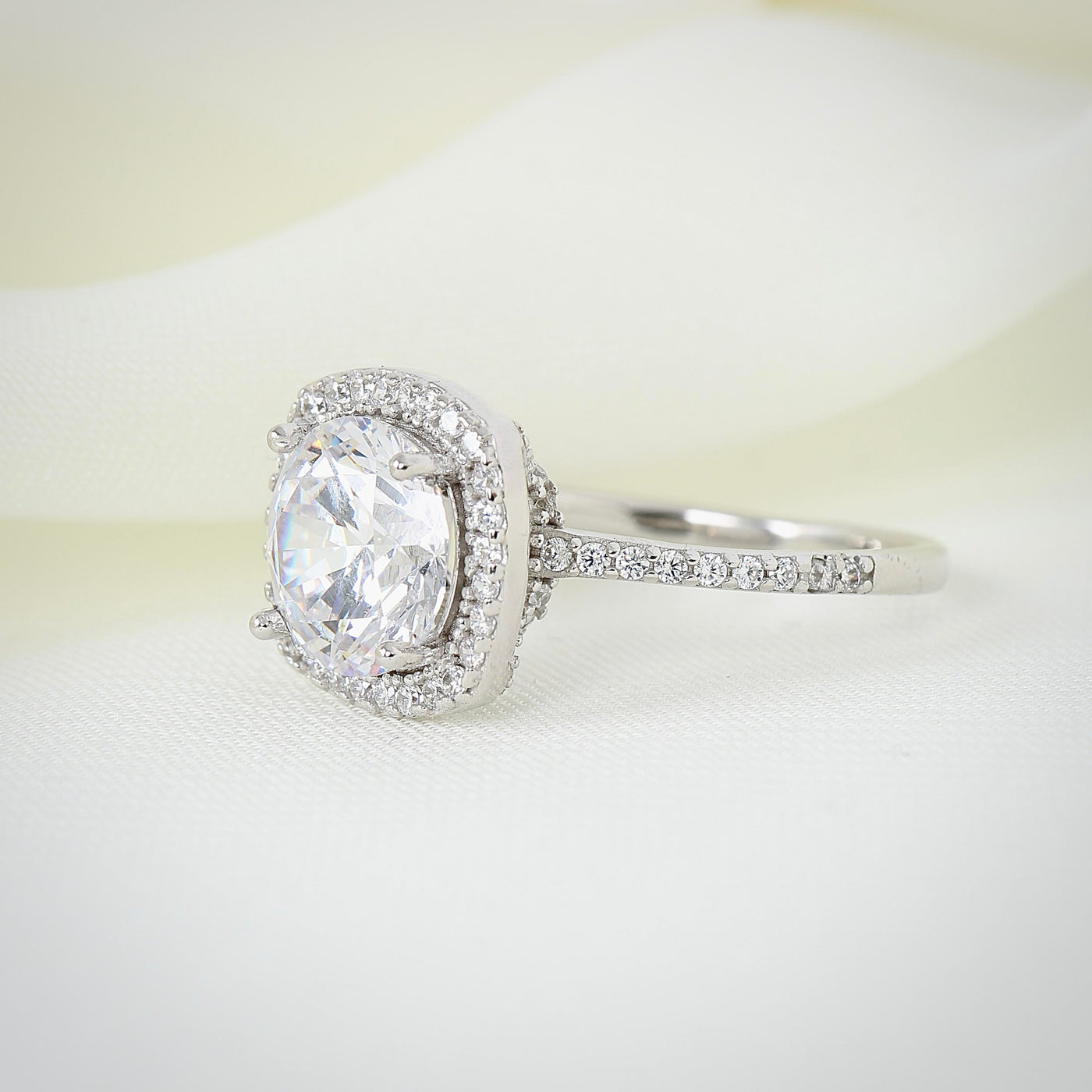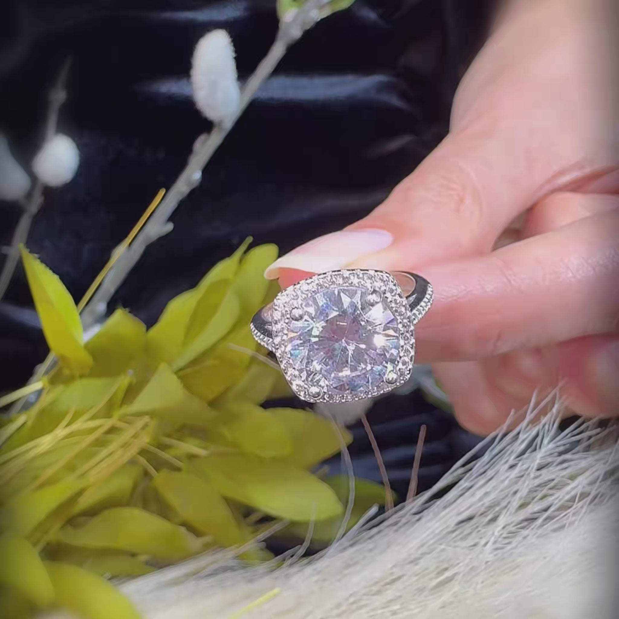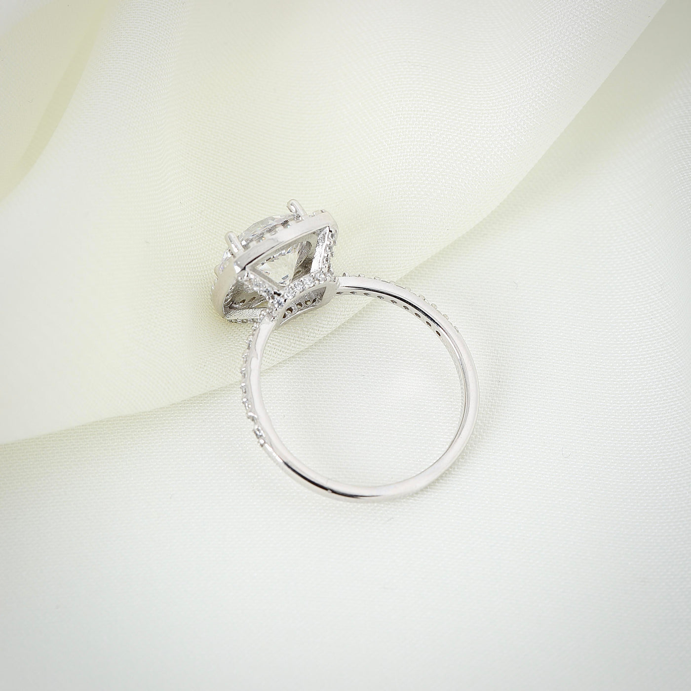 The Sparkling Grace Square Cut CZ 925K Sterling Silver Ring is a bold and elegant expression of timeless beauty. Crafted from high-quality 925K sterling silver, this ring features a stunning square cut cubic zirconia stone at its center, surrounded by a halo of smaller cubic zirconia stones. The precision-cut facets of the main stone capture the light beautifully, creating an alluring sparkle with every movement.