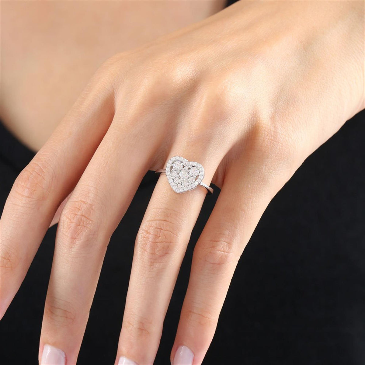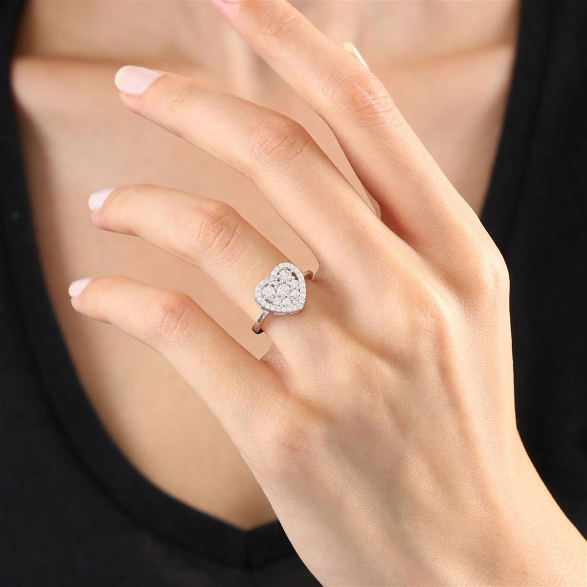 Sparkling Heart Harmony CZ 925K Sterling Silver Ring