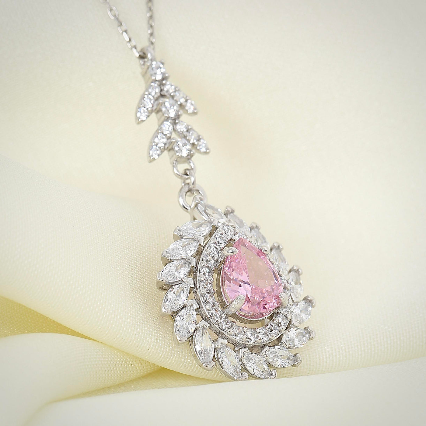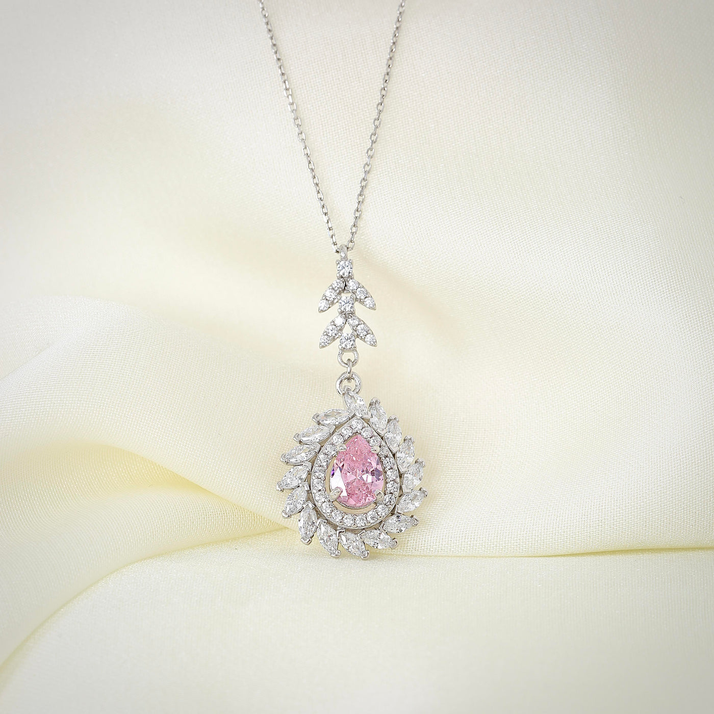 Sparkling Marquis Serenade Pink Gem CZ 925K Sterling Silver Necklace