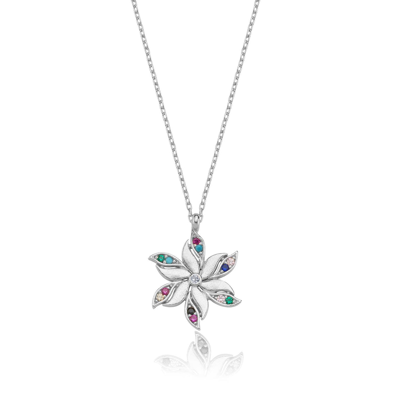 Stellar Bloom Multicolor CZ 925K Sterling Silver Necklace