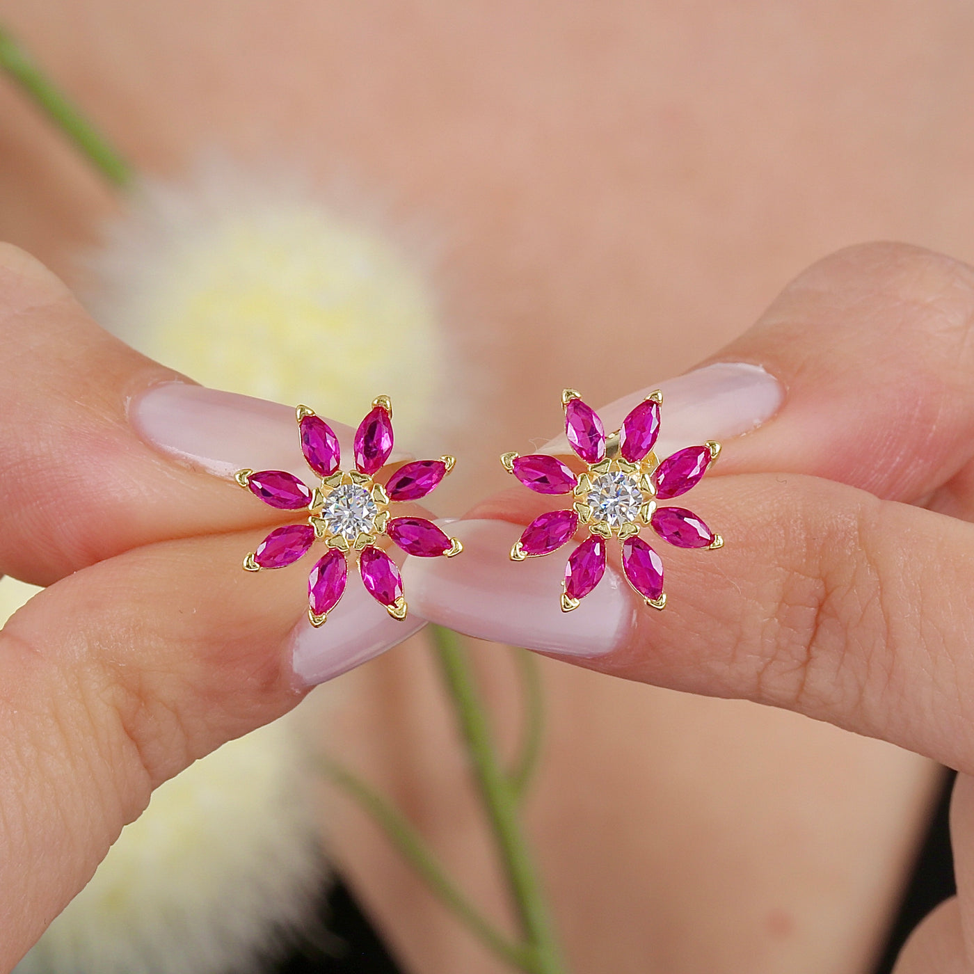 Sunlit Fuchsia Bloom CZ 14K Gold Earrings