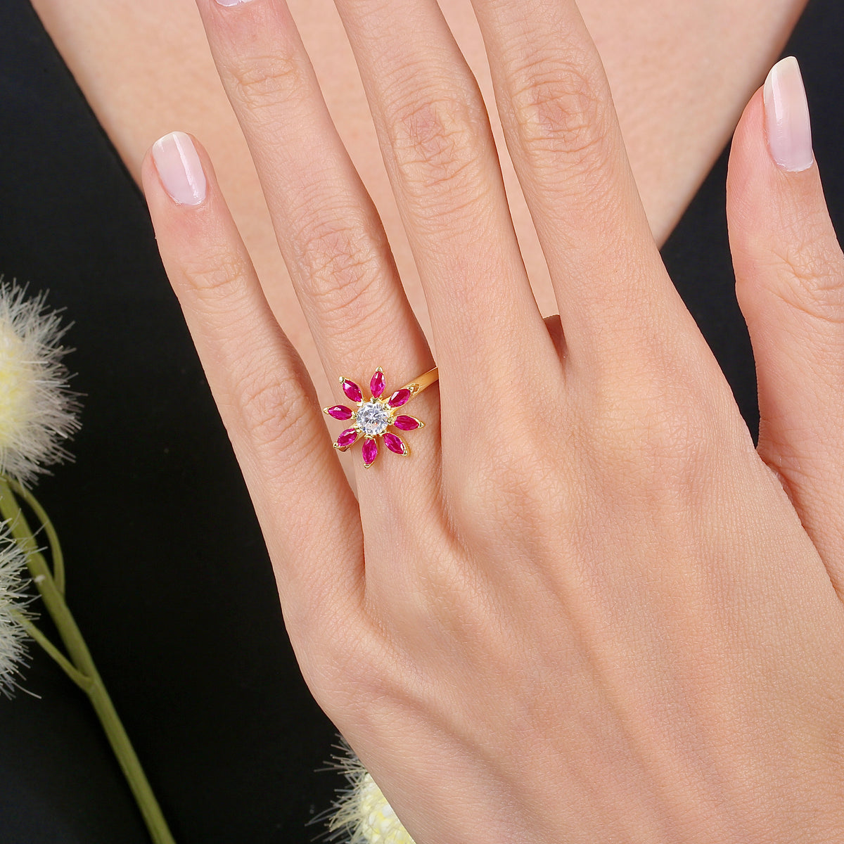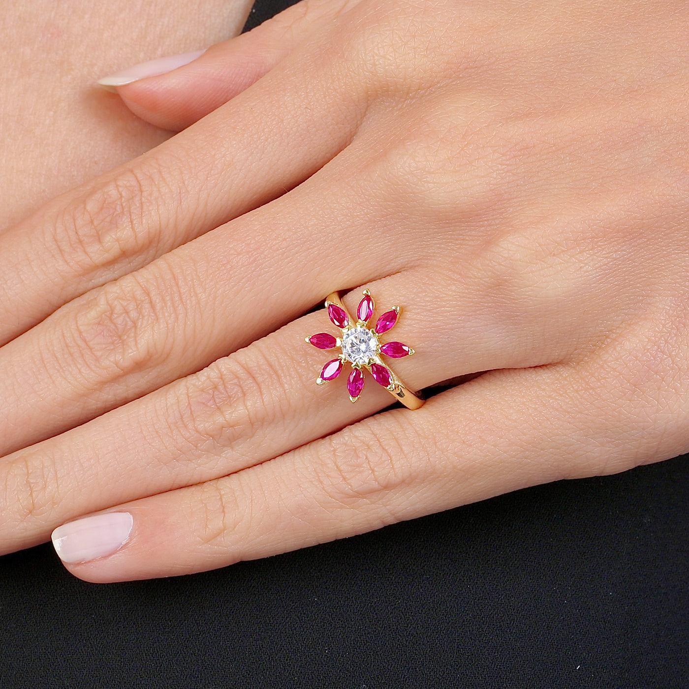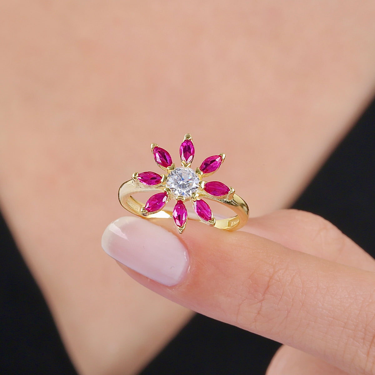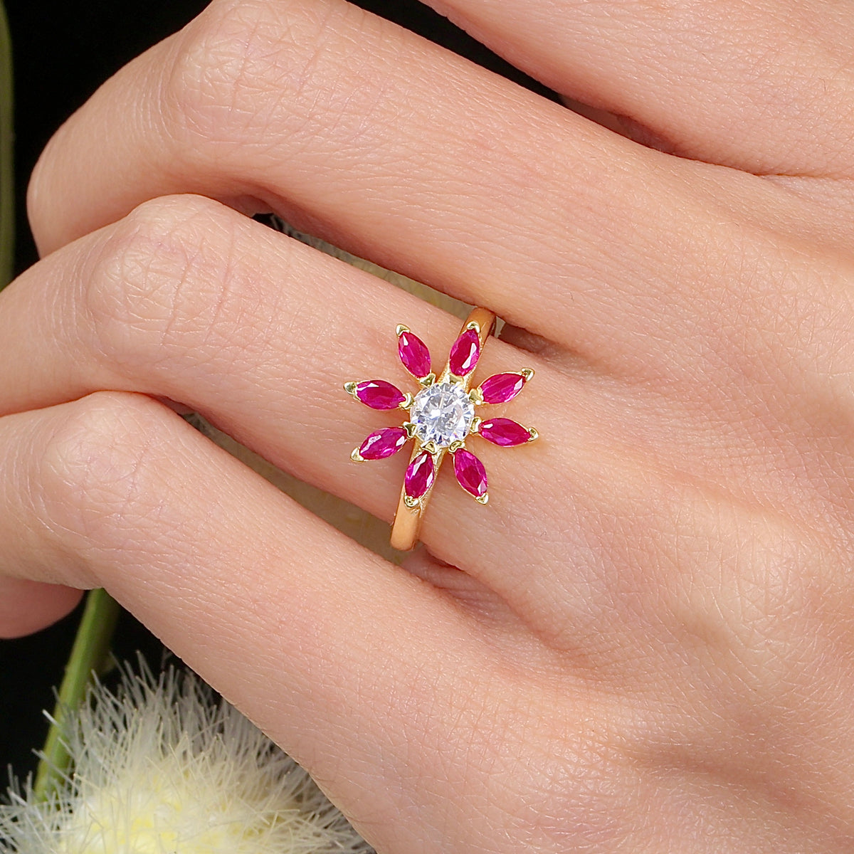 Sunlit Fuchsia Bloom CZ 14K Gold Ring