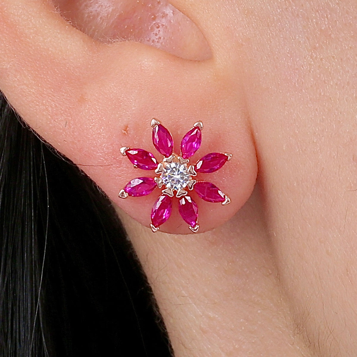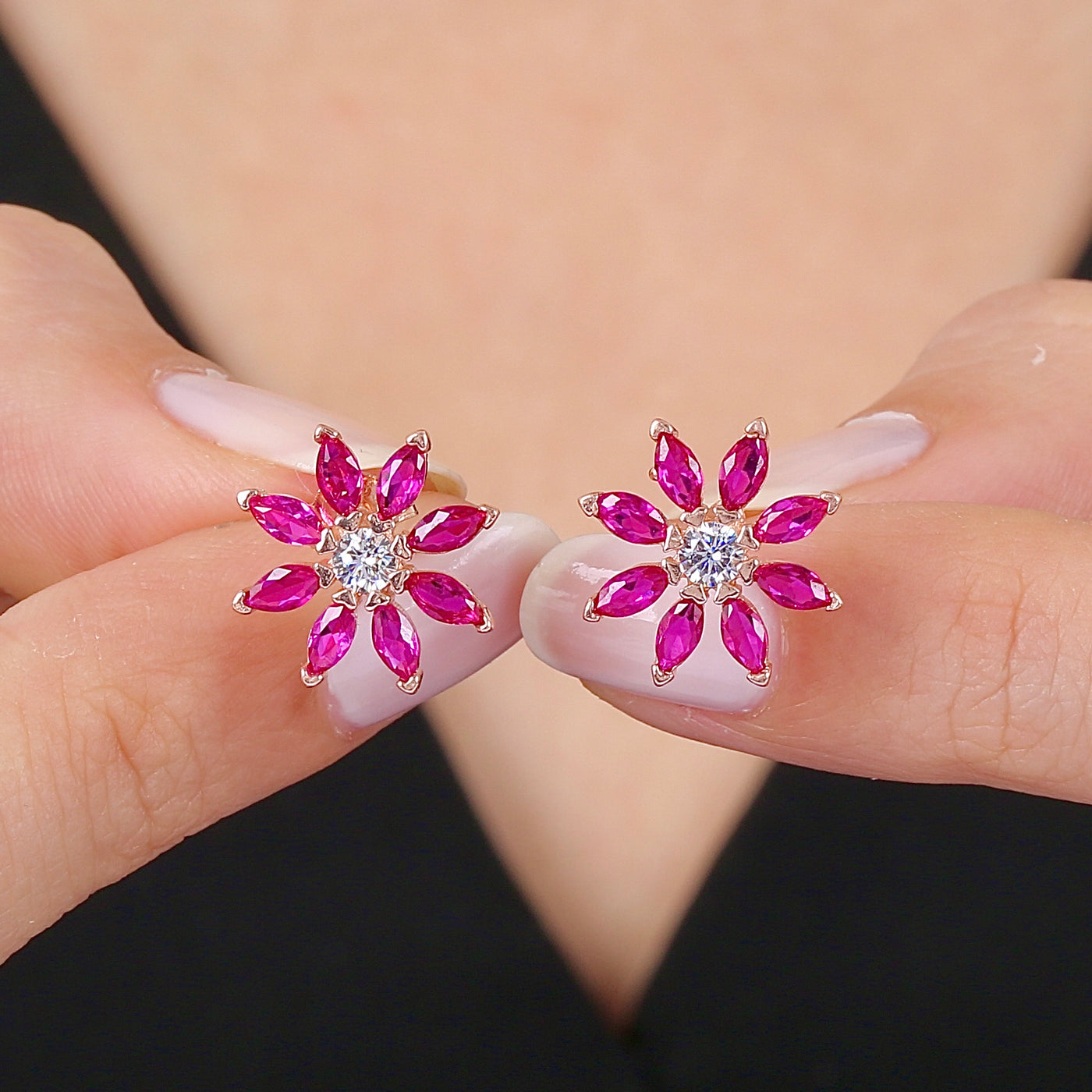 Sunlit Fuchsia Bloom CZ Rose Gold 925K Sterling Silver Earrings