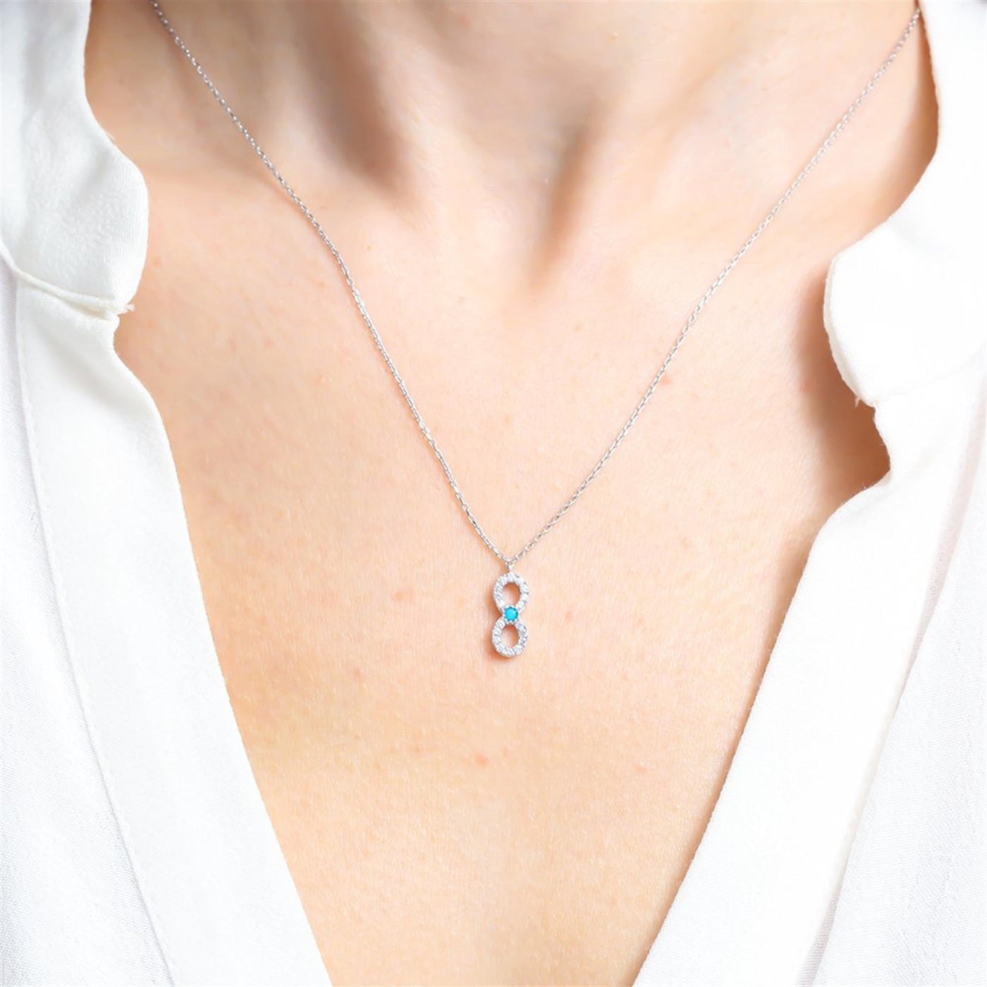 A symbol of endless beauty and serene strength—the Turquoise Infinity Spark CZ 925K Sterling Silver Necklace weaves meaning and elegance into one fluid form. Featuring a brilliant turquoise-colored cubic zirconia, this piece reflects clarity, calm, and timeless continuity.