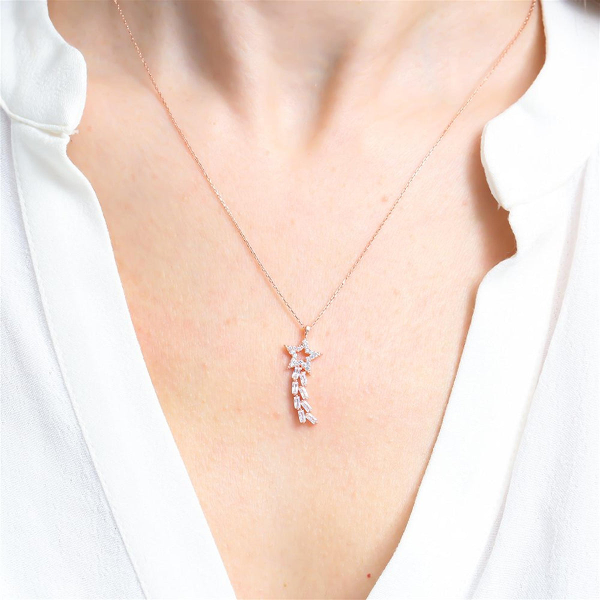 Crafted in rose gold-plated 925K sterling silver, this necklace blends cosmic inspiration with contemporary elegance. Its dynamic silhouette and luminous sparkle make it the perfect statement for those who carry quiet power and timeless charm.