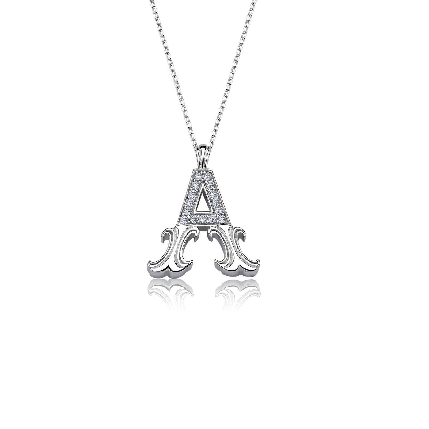 Vintage Elegance A Initial CZ 925K Sterling Silver Necklace
