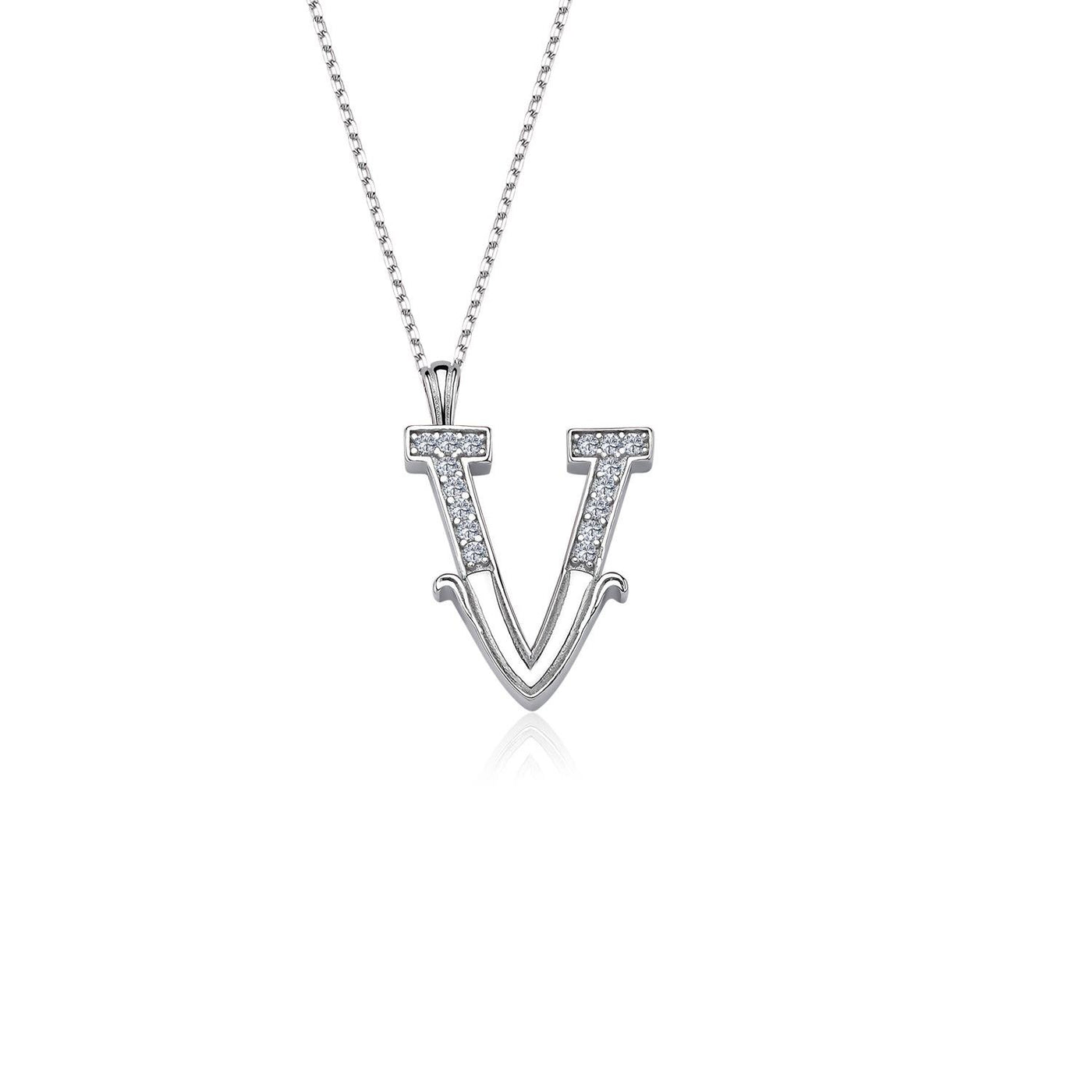 Vintage Elegance V Initial CZ 925K Sterling Silver Necklace