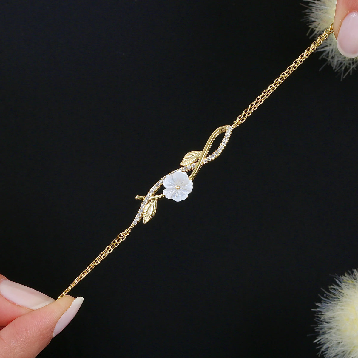 Whispering Magnolia Bloom Vine CZ 14K Gold Bracelet